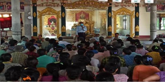 ဓနုဖြူမြို့နယ် ဇကာကြီး၊ ကပ်ခိုကျေးရွာ ဘုန်းတော်ကြီးကျောင်းတွင် တောင်သူများအား အသိပညာပေးဟောပြောခြင်း