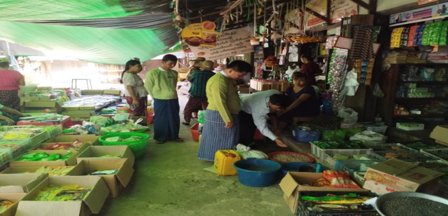 မြို့မဈေးအတွင်းရှိ အခြေခံစားသောက်ကုန်များအား ဈေးနှုန်းမြှင်တင်ရောင်းချခြင်း ရှိ/မရှိ ဈေးကွက်စောင့်ကြည့်စစ်ဆေးခြင်း