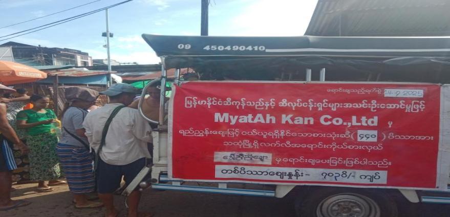 ၁၄.၉.၂၀၂၅ ရက်နေ့ နံနက် (၀၈း၀၀) နာရီအချိန်တွင် စားသုံးသူရေးရာဦးစီးဌာန၊ မွန်ပြည်နယ်၊ သထုံခရိုင်ဦးစီးမှူးရုံးမှ မြို့နယ်တာဝန်ခံ ဦးထိန်လင်းထွန်းနှင့် ဝန်ထမ်းများသည် “Myat Ah Kan Co.Ltd” မှ သထုံမြို့မဈေး၌ စားအုန်းဆီ ရောင်းချနေမှုအား ကွင်းဆင်း စစ်ဆေးခဲ့ပါသည်။