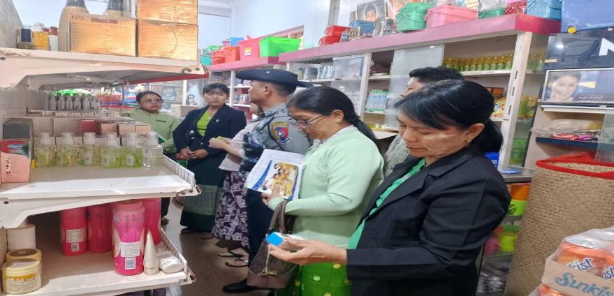ပူးပေါင်းအဖွဲ့သည် ရောင်းချနေသောအလှကုန်ပစ္စည်းများတွင် သက်ဆိုင်ရာဌာနများ၏ ထောက်ခံချက်များပါဝင်မှုရှိ/မရှိ၊ ဥပဒေပါပြဌာန်းချက်များနှင့်ကိုက်ညီမှုရှိ/မရှိနှင့် စားသုံးသူကာကွယ် ရေးဥပဒေပါ ကုန်အညွှန်းအမှတ်အသား ဖော်ပြပါဝင်မှုများတွင် ပြည့်စုံမှန်ကန်စွာထည့်သွင်းဖော်ပြမှု ရှိ/မရှိတို့အား စစ်ဆေးခဲ့ကြပြီး လုပ်ငန်းရှင်များအနေဖြင့် ဥပဒေပါပြဌာန်းချက်များ၊ သတ်မှတ်ချက် များနှင့်ကိုက်ညီမှုမရှိသော ကုန်စည်များအား ရောင်းဝယ်မှုမပြုရန်၊ စားသုံးသူအား ထိခိုက်နစ်နာဆုံးရှုံးမှု ဖြစ်ပေါ်စေနိုင်သောကုန်စည်များနှင့် သက်တမ်လွန်ကုန်စည်များ ရောင်းချမှုများမပြုလုပ်ကြရန်၊ သက်ဆိုင်ရာဌာနများမှ စားသုံးရန်နှင့်သုံးစွဲရန်မသင့်သော ကုန်စည်များရောင်းချခြင်းမပြုရန်၊ ဥပဒေ ပြဌာန်းချက်များ၊ သတ်မှတ်ချက်များ၊ ထုတ်ပြန်ချက်များ၊ ညွှန်ကြားချက်များနှင့် မညီညွတ်သော ကုန်စည်များစစ်ဆေးတွေ့ရှိပါက ဥပဒေများနှင့်အညီ စစ်ဆေးအရေးယူမှုများ ခံရမည်ဖြစ်ကြောင်းနှင့် ဈေးကွက်စောင့်ကြည့်စစ်ဆေးခြင်းများကို အစဉ်တစိုက်ဆောင်ရွက်သွားမည်ဖြစ်ကြောင်းကို အသိပညာပေး၍ ဈေးကွက်စောင့်ကြည့်စစ်ဆေးခြင်းများဆောင်ရွက်ခဲ့ပါသည်။