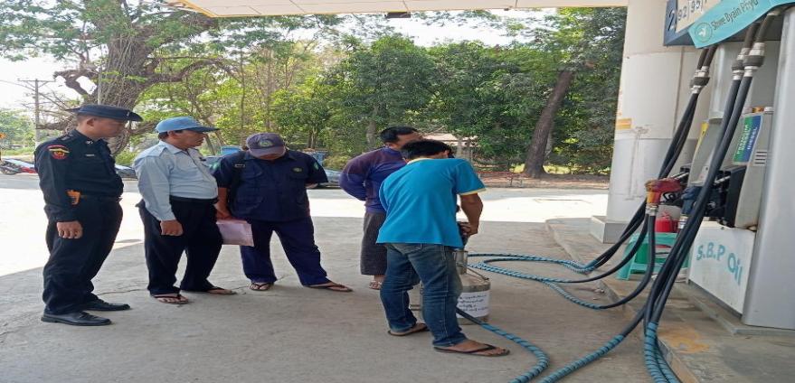 ထိုသို့ကွင်းဆင်းခဲ့ရာတွင် စက်သုံးဆီတင်သွင်း၊ သိုလှောင်၊ ဖြန့်ဖြူးရောင်းချမှုအခြေအနေ၊ စက်သုံးဆီ ပြတ်လပ်မှုမရှိစေရေး၊ (PPRD) စက်သုံးဆီတင်သွင်းသိုလှောင် ဖြန့်ဖြူးခြင်း လုပ်ငန်းကြီး ကြပ်ရေးကော်မတီ က နေ့စဉ်သတ်မှတ်ထုတ်ပြန်ထားသော စက်သုံးဆီရည်ညွှန်းဈေးနှုန်းအတိုင်း ရောင်းချမှု ရှိ/မရှိနှင့် အချိန် အတွယ်နှင့် အလေးချိန်မှန်ကန်မှု ရှိ/မရှိခြင်းတို့ကိုစစ်ဆေးခဲ့ပြီး၊ သတ်မှတ် စံချိန်စံညွှန်းပြည်မီရေး၊ လုပ်ငန်း ရှင်များ အနေဖြင့် တရားမဝင်စက်ဆီ/ ချောဆီ များတင်သွင်းရောင်းချ ခြင်းမပြုစေရေး၊ ထုတ်ပြန်ထားသော ညွှန်ကြားချက်များအတိုင်း လိုက်နာဆောင်ရွက်ရန်နှင့် ကုန်စည် နှင့် စပ်လျဉ်း၍ အာမခံချက်ပေးရာတွင် စားသုံးသူများ စိတ်ကျေနပ်မှုရှိစေရေးနှင့် စားသုံးသူဥပဒေ ၂၀၁၉ ပါ စီးပွားရေးလုပ်ငန်းရှင်၏ တာဝန်များ အကြောင်း အသိပညာပေး ဆွေးနွေးခဲ့ကြောင်းသိရှိရပါသည်။