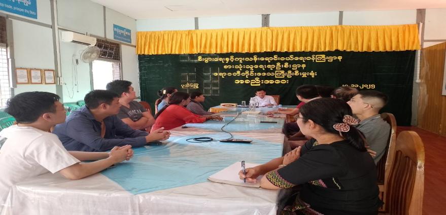 ဧရာဝတီတိုင်းဒေသကြီး စားသုံးသူရေးရာဦးစီးဌာနအစည်းအဝေးခန်းမတွင် ဆေးနှင့်ဆေးပစ္စည်းရောင်းဝယ်နေသောလုပ်ငန်းရှင်များနှင့်တွေ့ဆုံ
