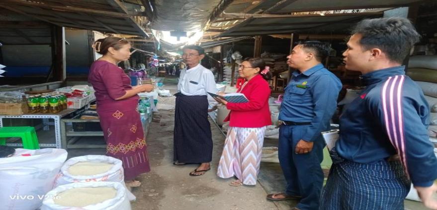 စားသုံးသူရေးရာဦးစီးဌာန၊ မကွေးတိုင်းဒေသကြီး၊ မင်းဘူးခရိုင်ဦးစီးမှူးရုံးမှဝန်ထမ်းများသည် တိုင်းဒေသကြီးဦးစီးမှူး၏ လမ်းညွှန်ချက်အရ မိတ်ဖက်ဌာနများနှင့် ပူးပေါင်း၍ မင်းဘူးမြို့ပေါ်ရှိ ဆန်ဆိုင်များဖြစ်သော စန်းရတနာတင့်၊ စွယ်တော်၊ မွန်၊ ပြည့်စုံခိုင်၊ ဒေါ်ခင်ညွှန့်ဆန်ဆိုင်များသို့ (၂.၁၂.၂၀၂၅)ရက်နေ့၊ နံနက်(၁၃:၀၀)နာရီအချိန်တွင်သွားရောက်၍ MyRo တွင် ကုန်ရ၊ ကုန်ထုတ်၊ ကုန်လက်ကျန်စာရင်းရေးသွင်းထားရှိမှု၊ ဈေးကွက်အတွင်း ပေါ်ဆန်းနှင့် ကုန်ဇောင်းဧရာပဒေသာဆန် များ လက်ရှိရောင်းချနေသည့် ဈေးနှုန်းများကောက်ခံခြင်း ဆောင်ရွက်ခဲ့ကြောင်း သိရသည်။