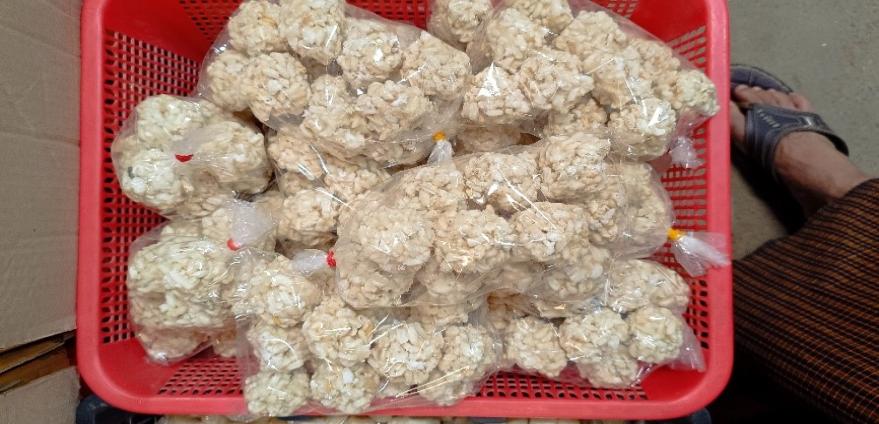 စစ်ကိုင်းတိုင်းဒေသကြီး၊ ကန့်ဘလူခရိုင်၊ ကန့်ဘလူမြို့ပေါ်ရှိ ကုန်စုံဆိုင်များနှင့် “မြို့မဈေး”ရှိ ကုန်စုံဆိုင်များတွင် လူသုံးကုန်ပစ္စည်းများ၊ စားသောက်ကုန်ပစ္စည်းများ၊ သရေစာ စားစရာတို့ကို ရောင်းချလျက်ရှိရာ ရေဦးပေါက်ပေါက်ဆုပ်လည်း အပါအဝင်ဖြစ်သည်။ ရေဦးပေါက်ပေါက်ဆုပ်သည် လေလုံအောင်ထားခြင်းဖြင့် တာရှည်အထားခံကာ အချိုတည်းစရာအဖြစ်ပဲစားစား၊ ဧည့်သည်များကို တည့်ခင်းဧည့်ခံရာတွင်ပဲသုံးသုံး ဘက်စုံအသုံးဝင်သည့် သရေစာ စားစရာတစ်မျိုးဖြစ်ကြောင်း သိရသည်။