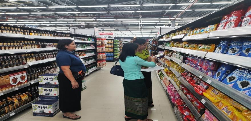 အဆိုပါ ကွင်းဆင်းစစ်ဆေးခဲ့ရာတွင် တောင်ပိုင်းခရိုင်ဦးစီးမှူးရုံးမှ ဝန်ထမ်းများသည် Aeon Orange SuperMarket မှ မန်နေဂျာနှင့်တွေ့ဆုံကာ အသင့်စားမုန့်အမျိုးမျိုးတို့တွင် ကုန်အညွှန်း အမှတ်အသားပြည့်စုံစွာဖော်ပြထားခြင်းရှိ/မရှိ မြေပြင်ကွင်းဆင်းစစ်ဆေးပြီး ကုန် အညွှန်းအမှတ် အသားများအား ဖော်ပြရာတွင်လည်း ကုန်စည်အမျိုးအစားအလိုက် သတ်မှတ်ချက်များနှင့်အညီ မြန်မာဘာသာဖြင့်ဖြစ်စေ၊ မြန်မာဘာသာနှင့် အခြားဘာသာတစ်ခု(သို့မဟုတ်) တစ်ခုထက်ပို၍ တွဲလျက်ဖြစ်စေ သိသာထင်ရှားစွာ ဖော်ပြပြီးမှသာဈေးကွက်အတွင်းရောင်းချရမည်ဖြစ်ကြောင်း စီးပွားရေးလုပ်ငန်းရှင်များ လိုက်နာရမည့်အချက်များအား ရှင်းလင်းဆွေးနွေး အသိပညာပေးခဲ့ကြောင်း သိရှိရပါသည်။