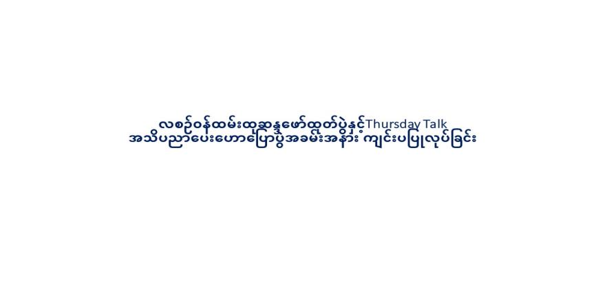 ၂၀၂၆ ခုနှစ်၊ ဇန်နဝါရီလ ၁၂ ရက်နေ့၊ နေ့လယ် (၁၄:၀၀) နာရီအချိန်တွင် စားသုံးသူရေးရာဦးစီးဌာန၊ ရှမ်းပြည်နယ်ဦးစီးမှူးရုံး အစည်းအဝေးခန်းမ၌ လစဉ်ဝန်ထမ်းထုဆန္ဒဖော်ထုတ်ပွဲနှင့် Thursday Talk အသိပညာပေးဟောပြောပွဲအခမ်းအနားကို inperson အရာထမ်း ၄ ဦး၊ အမှုထမ်း၁၈ဦး၊ လုပ်အားပေး ၅ဦး၊ online အနေဖြင့် ဒုတိယပြည်နယ်ရုံးများ၊ ဒေသဦးစီးမှူးရုံး၊ ခရိုင်ဦးစီးမှူးရုံးများ တက်ရောက်ခြင်းဖြင့် ကျင်းပပြုလုပ်ခဲ့ပါသည်။