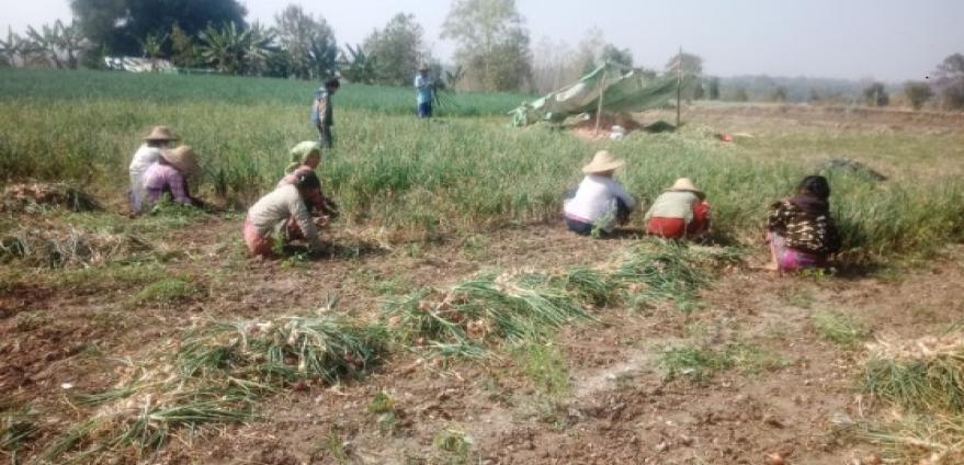 ကျောက်ဆည်ခရိုင်သည် ဆည်ရေသောက်ဒေသတစ်ခုဖြစ်ပြီး သီးနှံမျိုးစုံ အောင်မြင်ဖြစ်ထွန်း လျက်ရှိရာ စပါး၊ ပဲ၊ ပြောင်းသီးနှံများအပြင် စားဖိုဆောင်သီးနှံတစ်မျိုးဖြစ်သော ကြက်သွန်သီးနှံကို လည်း စိုက်ပျိုးလျက်ရှိပါသည်။ မြစ်သားမြို့နယ်အတွင်း ဆောင်းကြက်သွန်နီ စိုက်ဧက (၇၅၀၀) ဧက စိုက်ပျိုးထားရှိပြီဖြစ်ကြောင်း စိုက်ဧကတစ်ဝက်နီးပါးခန့် ရိတ်သိမ်းပြီး ဖြစ်ကြောင်း သက်ဆိုင်ရာဌာန များ၏ စာရင်းများအရ သိရှိပါသည်။ ယခုအခါ ကြက်သွန်နီများ တူးဖော်လျက်ရှိပြီး အများဆုံး စိုက်ပျိုးသော ကျေးရွာများမှာ ကသဲကုန်း၊ လေးဆယ်ကုန်း၊ ဆည်ရွာများ ဖြစ်ပါသည်။ စိုက်ပျိုးမှု အနေဖြင့် ကြက်သွန်ကို ပျိုးထောင်ပြီး(၄၅)ရက်သားပျိုးပင်များကို စိုက်ပျိုးရန်အသင့် ပြုလုပ်ထားသော စိုက်ဘောင်များသို့ ရွှေ့ပြောင်းစိုက်ပျိုးရပါသည်။ အများဆုံး စိုက်ပျိုးသော မျိုးများမှာ ရွှေဖလားမျိုး၊ ရွှေဖလားထိပ်မောက်မျိုးများကို စိုက်ပျိုးကြကြောင်း၊ ကြက်သွန်နီ (၁)ဧက စိုက်ပျိုးထုတ်လုပ်မှု ကုန်ကျစရိတ်အနေဖြင့် မျိုး၊ သွင်းအားစု၊ လုပ်သားခအပါအဝင် စုစုပေါင်း သိန်း (၃၀) ကျော်ကုန်ကျ ကြောင်း၊ ထွက်ရှိမှုအနေဖြင့်(၁)ဧက အထွက်နှုန်း (၃၀၀၀)ပိဿာ ကျော်ထွက်ရှိခဲ့ကြောင်း၊ တောဝယ် ဆောင်းကြက်သွန်နီ စျေးနှုန်းအနေဖြင့် အကြီး၊ အလတ်၊ အသေးအရော (၁)ပိဿာလျှင်(၁၈၀၀-၂၀၀၀) ကျပ် အထိစျေးနှုန်းများဖြင့် အရောင်းအဝယ်ဖြစ်ခဲ့ကြောင်း၊ ယခု လက်ရှိ ကြက်သွန်နီ(ဆောင်း) အကြီး(၁)ပိဿာလျှင်(၂၇၀၀/-)ကျပ်၊ အလတ်(၁)ပိဿာလျှင် (၂၅၀၀/-)ကျပ်၊ အသေး(၁)ပိဿာလျှင် (၂၀၀၀/-)ကျပ်ဖြင့် ရောင်းဝယ်လျက်ရှိကြောင်း၊ ရောင်းဝယ်မှုအနေဖြင့် ပွဲစားများမှ စိုက်ခင်းထဲ အရောက် လာရောက်ဝယ်ယူကြကြောင်း၊ မြို့ပေါ်ပွဲရုံများသို့လည်း တိုက်ရိုက်တင်ပို့ရောင်းချကြ ကြောင်း၊ တစ်ဧကအကျိုးအမြတ်အနေဖြင့် မျိုး၊ သွင်းအားစု၊ လုပ်သားခအပါအဝင် စုစုပေါင်း ကုန်ကျစရိတ်နှုတ်ပြီး (၂၄၀၀၀၀၀/-)ကျပ်ခန့် မြတ်ကြောင်း၊ မိုးကြက်သွန်နီ စိုက်ပျိုးသော တောင်သူများအနေဖြင့်ဈေးနှုန်းများကောင်းမွန်သောကြောင့်အကျိုးအမြတ်ပိုမိုဖြစ်ထွန်းခဲ့ကြောင်း၊ ဆောင်းကြက်သွန်နီ ထွက်ပေါ်ချိန်တွင် ဈေးနှုန်းများအနည်းငယ်ကျဆင်းသောကြောင့် (မိုး) ကြက်သွန် လောက်(ဆောင်း)ကြက်သွန်စိုက်ပျိုးသူများအနေဖြင့် အကျိုးအမြတ်နည်းကြောင်း၊ ဆောင်းကြက်သွန် စိုက်ပျိုးသော တောင်သူတစ်ဦး၏ ပြောကြားချက်အရသိရှိရပါသည်။