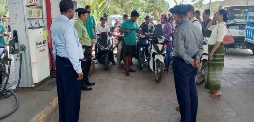 ထိုသို့စစ်ဆေးရာတွင်  မြို့နယ်ဦးစီးမှူးမှ စက်သုံးဆီတင်သွင်းရောင်းချဖြန့်ဖြူးနေသည့် လုပ်ငန်းရှင်များအား တရားမဝင်သွင်းကုန် စက်သုံးဆီ၊ ချောဆီများအား တရားမဝင်ကုန်သွယ်မှုတိုက်ဖျက်ရေး အထူးအဖွဲ့ဖြင့် စစ်ဆေးဖော်ထုတ် ဆောင်ရွက်နေကြောင်း၊ စက်သုံးဆီ၊ ချောဆီများ သယ်ဆောင်မှုအား စောင့်ကြည့်စစ်ဆေးခြင်း၊ မြို့နယ်အလိုက်စက်သုံးဆီအရောင်းဆိုင် အရေအတွက်နှင့် လက္ကားဝယ်ယူသည့် ကုမ္ပဏီစာရင်းများ ကောက်ယူနေကြောင်း လုပ်ငန်းရှင်များအနေဖြင့် တရားမဝင်စက်သုံးဆီ၊ ချောဆီများတင်သွင်း၊ ဖြန့်ဖြူးရောင်းချနေခြင်း စစ်ဆေးတွေ့ရှိရပါက အရေးယူဆောင်ရွက်သွားမည်ဖြစ်ကြောင်း PPRD မှ နေ့စဉ်ထုတ်ပြန်ထားသော စက်သုံးဆီရည်ညွှန်းဈေးထက်ပိုမိုရောင်းချခြင်းရှိ/ မရှိနှင့် ပြည်သူများ အဆင်ပြေစွာ ဝယ်ယူနိုင်ရေးအတွက် မြို့နယ်အတွင်းရှိ စက်သုံးဆီအရောင်းဆိုင်များ စက်သုံးဆီပြတ်လပ်မှုမရှိစေရေး ပုံမှန်ဖွင့်လှစ်ရောင်းချနိုင်ရေး စက်သုံးဆီများကို သတ်မှတ်ဈေးနှုန်းထက် ပိုမိုရောင်းချခြင်းမပြုပဲ အချိန်အတွယ် မှန်ကန်စွာရောင်းချနိုင်ရေး ထုတ်ပြန်ထားသော ညွှန်ကြားချက်များအတိုင်း လိုက်နာဆောင်ရွက်ကြရန်၊ စက်သုံးဆီခြိုးခြံချွေတာရေးနှင့် ဖူလုံမှုရှိစေရေးအတွက် မော်တော်ယာဉ်များ စည်းကမ်းသတ်မှတ်ချက်နှင့် အညီ စုံ၊ မ ခွဲခြားမောင်းနှင်ခြင်းရှိ/ မရှိအား  ကွင်းဆင်းစစ်ဆေး ဆောင်ရွက်ခဲ့ကြောင်း သိရှိရပါသည်။