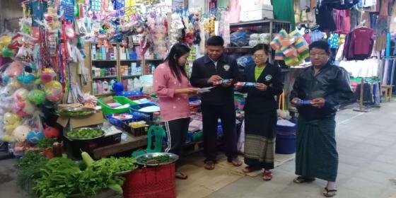 ကျောက်ဆည်ခရိုင်၊ စားသုံးသူရေးရာဦးစီးဌာနမှ စစ်ဆေးရေးအရာရှိများသည် ဇန်နဝါရီလ(၂၂)ရက်နေ့တွင် ကျောက်ဆည်မြို့နယ်၊ စည်ပင်သာယာရေးအဖွဲ့နှင့် ပူးပေါင်းပြီး အေးမြကြည်လင်စျေးနှင့် မြို့မစျေးအတွင်းရှိ ဆန်အရောင်းဆိုင်များအား ဆန်လက်ကျန်စာရင်းနှင့် ဆန်စျေးနှုန်းများအား သတ်မှတ်ရည်ညွှန်းစျ