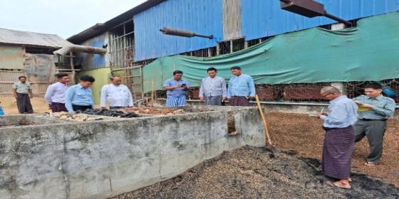ဧရာဝတီတိုင်းဒေသကြီးအစိုးရအဖွဲ့ ဝန်ကြီးမှ သာပေါင်းမြို့နယ် ကြက်သွန်ကွင်းကျေးရွာ ပြည့်ဖြိုးကျော်ဆန်စက် Gasifier ဆန်စက်ကွင်းဆင်းစစ်ဆေး