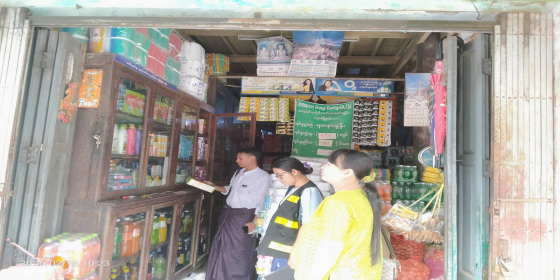 ဧရာဝတီတိုင်းဒေသကြီး၊ စားသုံးသူရေးရာဦးစီးဌာန၊ မအူပင်ခရိုင်အတွင်းရှိ မအူပင်၊ ပန်းတနော်၊ ညောင်တုန်း၊ ဓနဖြူမြို့နယ်များတွင် စားအုန်ဆီရောင်းချသည် လက္ကား၊ လက်လီဆိုင်များအား ဈေးနူန်းမြင့်တင် ရောင်းချမူမရှိစေရေး၊ သတ်မှတ်ရည်ညွန်းဈေးအတိုင်း ရောင်းချရေး၊ ရရှိခွဲတမ်းများအပြည့်အဝရောင်းချပေးရေး အသိပေးဆောင်ရွက်မူများကို မအူပင်ခရိုင်ဦးစီးမှူး ဦးဇော်မင်း လက်ထောက်ညွှန်ကြားရေးမှူးနှ