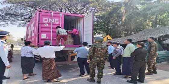 မှော်ဘီမြို့နယ်၊ အမှတ်(၄)လမ်းဆုံဂိတ်တွင် ရန်ကုန်အဝင်ကုန်တင်ယာဉ်များအား စစ်ဆေးခြင်း
