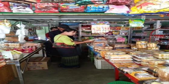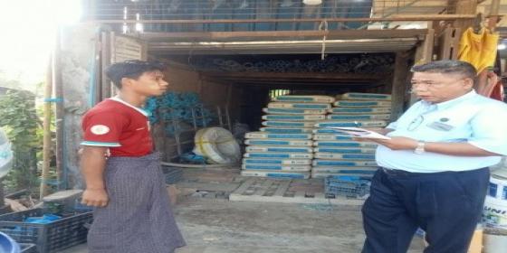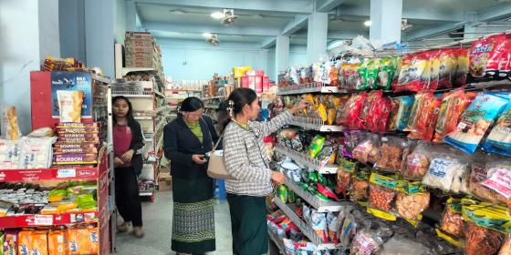 မုံရွာမြို့၊ ကျောက္ကာလမ်းပေါ်ရှိ လူသုံးကုန်နှင့် စားသောက်ကုန်ပစ္စည်းအရောင်းဆိုင်များသို့ ဈေးကွက်စောင့်ကြည့်စစ်ဆေး