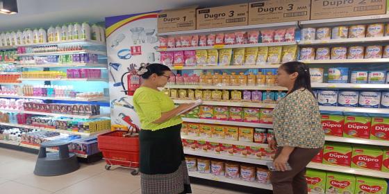 ၁၄.၁၀.၂၀၂၅ ရက်နေ့တွင် နံနက်(၁၀:၀၀) အချိန်တွင် အလုံမြို့နယ် City Mart ၊ လှိုင်မြို့နယ် Yangon Baby နှင့် မရမ်းကုန်းမြို့နယ် 9 မိုင် Ocean တို့တွင်ရောင်းချလျှက်ရှိသော ကလေးအဟာရ ဖြည့်စွက်စာအမျိုးမျိုးတို့တွင် ကုန်အညွှန်းအမှတ်အသားများ ပြည့်စုံစွာပါဝင်ခြင်းရှိ/မရှိအား ကွင်း ဆင်းစစ်ဆေးခြင်းများကို အနောက်ပိုင်းခရိုင်ဦးစီးမှူးရုံးမှ စစ်ဆေးရေးမှူ
