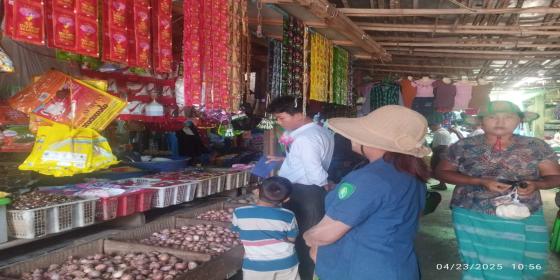 ဧရာဝတီတိုင်းဒေသကြီး၊ ပန်းတနော်မြို့နယ်တွင် အခြေခံစားသောက်ကုန်များ၊ ဈေးကွက်အတွင်း မရှိ မဖြစ် လိုအပ်လျက်ရှိသော ကုန်ပစ္စည်းများကို စားသုံးသူ ပြည်သူများ ဘေးအန္တရာယ်ကင်းရှင်းစွာ သုံးစွဲနိုင်ရေး ၉-၁၀-၂၀၂၅ ရက်နေ့ နံနက် ၈နာရီအချိန်က ပန်းတနော်မြို့မဈေးကြီးအတွင်းရှိ ကုန်စုံဆိုင်များအ