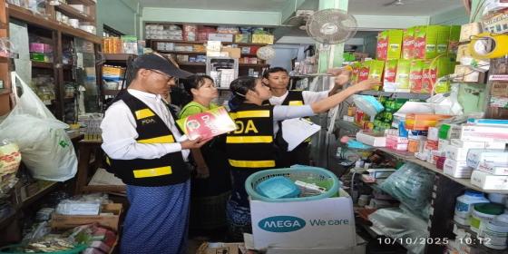 ဧရာဝတီတိုင်းဒေသကြီး၊ မအူပင်ခရိုင်၊ မအူပင်မြို့နယ်အတွင်းရှိ ဆေးဆိုင်များတွင် Dumex Dupro Brand အမှတ်တံဆိပ်အတုများရောင်းချမှုရှိမရှိ စစ်ဆေးခြင်းကို ၁၀-၁၀-၂၀၂၅ ရက်နေ့ နံနက်