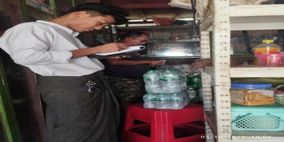 ဧရာဝတီတိုင်းဒေသကြီး၊ ပန်းတနော်မြို့နယ်ရှိ ဈေးကွက်အတွင်း ရောင်းချနေသော သောက်ရေသန့်အမျိုးမျိုးတွင် သတ်မှတ်ချက် ပြည့်မီစေရေးအတွက် ပန်းတနော်မြို့နယ် စားသုံးသူရေးရာဦးစီးဌာနနှင့် မြို့နယ်သက်ဆိုင်ရာ ဌာနဆိုင်ရာများ ပါဝင်သည့်