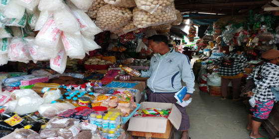 စားသုံးသူရေးရာဦးစီးဌာန၊ ကလေးခရိုင်၊ ကလေးမြို့၊ ပင်လုံရပ်ကွက်အတွင်းရှိ ကလေးတစ်ကိုယ်ရေသန့်ရှင်းရေးသုံးပစ္စည်းအမျိုးမျိုး ရောင်းချလျက်ရှိသည့် ကုန်မျိုးစုံအရောင်းဆိုင်များအား ဒေါ်သန်းသန်းဝင်း ( ခရိုင်ဦးစီးမှူး ) မှ ဦးဆောင်၍ ဈေးကွက်စောင့်ကြည့် စစ်ဆေးခြင်းများ ဆောင်ရွက်
