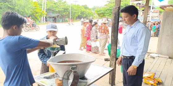 စစ်ကိုင်းတိုင်းဒေသကြီး၊ စားသုံးသူရေးရာဦးစီးဌာန၊ ကန့်ဘလူမြို့နယ်တာဝန်ခံရုံးသည်၂၀၂၅ ခုနှစ်၊ အောက်တိုဘာလ ၉ ရက်နေ့ နံနက် ၀၈:၄၅ အချိန်တွင် ကန့်ဘလူမြို့နယ်တာဝန်ခံ ဦးမျိုးဝင်းသန်းနှင့် ဒေါ်အိမွန်ကျော် အကြီးတန်းစာရေးတို့သည် ကန့်ဘလူမြို့၊ အမှတ်(၄)ရပ်ကွက်ရှိ ကုန်စုံဆိုင်များတွင်ရောင်းချနေသော စားသုံးဆီအမျိုးမျိုးအား ဈေးကွ
