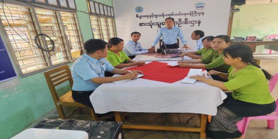 ဧရာဝတီတိုင်းဒေသကြီး၊ ကျုံပျော်ခရိုင်၊ ကျောင်းကုန်းမြို့နယ် စားသုံးသူရေးရာဦးစီးဌာနမှ မြို့နယ်တာဝန်ခံ ဦးတင်ကိုနှင့် ဝန်ထမ်းတို့သည်