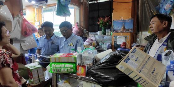 ဖျာပုံခရိုင်၊ ဖျာပုံမြို့နယ် စားသုံးသူရေးရာဦးစီးဌာနမှ ဒုခရိုင်မှူး ဦးစိုးမင်းထိုက်နှင့် မြို့နယ်အထွေထွေ အုပ်ချုပ်ရေးဦးစီးဌာန၊ မြို့နယ်စည်ပင်သာယာရေးအဖွဲ့၊ မြို့နယ်ကျန်းမာရေးဦးစီးဌာနတို့ ပူးပေါင်း၍ ဖျာပုံမြို့နယ်အတွင်းရှိ ပီတိသုခဆေးဆိုင်အား အောက်တို