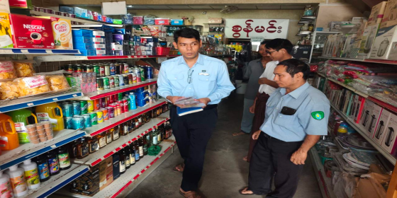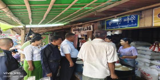 စားသုံးသူရေးရာဦးစီးဌာန၊ မြင်းခြံခရိုင်ရုံးမှဒု-ခရိုင်ဦးစီးမှူး ဦးတင်ဇော်ထွေး (ဦးစီးအရာရှိ) ဦးဆောင်၍ ၄၅ လမ်းပေါ်ရှိ ဆန်လက်လီလက်ကားရောင်းချသော ဦးသိန်း-ဒေါ်တင်ဝိုင်း ဆန် အရောင်းဆိုင်သို့ ၂၆.၉.၂၀၂၅ ရက်နေ့ နံနက် (၁၀:၀၀)နာရီအချိန်တွင်