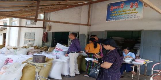 စားသုံးသူရေးရာဦးစီးဌာန၊ ညောင်ဦးခရိုင်တာဝန်ခံဦးတင်မျိုးခိုင်(ဦးစီးအရာရှိ)က ဦးဆောင်၍ ညောင်းဦးမြို့နယ် မဏိစည်သူဈေးတိုက်တန်းရှိ ဆန်လက်လီ/လက်ကားရောင်းချသော အောင်ဆန် ရောင်း