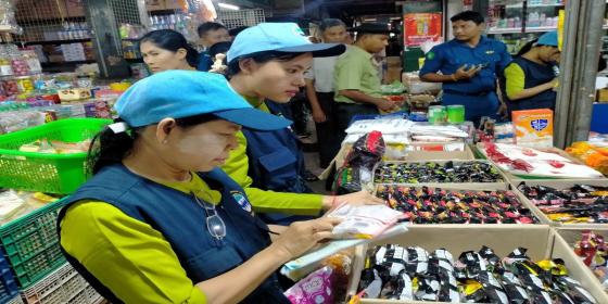 မော်လမြိုင်မြို့နယ်အတွင်းရှိ အသင့်စားခေါက်ဆွဲခြောက်ထုပ်အမျိုးမျိုးအား ဈေးကွက်စောင့်ကြည့်စစ်ဆေးခြင်း