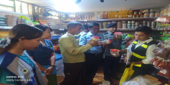 စားသုံးသူရေးရာဦးစီးဌာန၊ သာယာဝတီခရိုင် မိုးညိုမြို့၌ ခရိုင်ဦးစီးမှူး၏ လမ်းညွှန်မှု ဖြင့်၁၃.၁၁.၂၀၂၅ ရက်နေ့ နံနက်(၉:၃၀)နာရီအချိန်တွင် ဈေးအတွင်းရှိ သခင်လှရှိန်ရပ်ကွက်ရှိ ဦးတ
