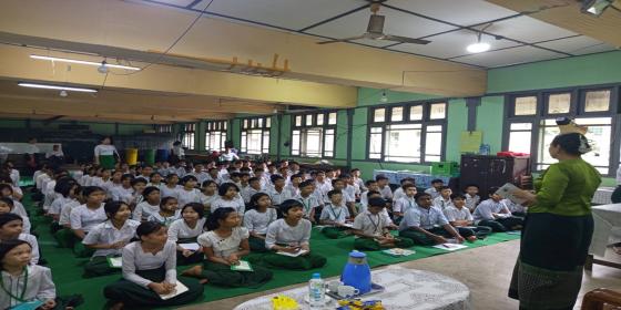 ၁၆.၉.၂၀၂၅ ရက်နေ့ နံနက် (၁၁:၀၀) နာရီအချိန်တွင် မရမ်းကုန်းမြို့နယ် အ.လ.က(၄) အလယ်တန်းကျောင်းသို့ အနောက်ပိုင်းခရိုင်ဦးစီးမှူးရုံးမှ ဒေါ်မြတ်မွန်နှင့် ဝန်ထမ်း(၂) ဦးတို့သည် စားသုံးသူအကာအကွယ်ပေး အသိပညာပေးဆောင်ရွက်ခဲ့ကြောင်း သိရှိရပါသည်။
