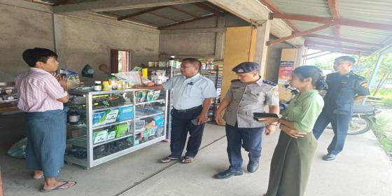 ဧရာဝတီတိုင်းဒေသကြီး၊ မအူပင်ခရိုင်၊ ပန်းတနော်မြို့နယ် စားသုံးသူရေးရာဦးစီးဌာန၊ စိုက်ပျိုးရေးဌာနမှ မြို့နယ်ဦးစီးမှူးနှင့် မြေ၊ မျိုး၊ ပိုး တာဝန်ခံများလိုက်ပါလျက် မြို့နယ်အတွင်းရှိ စိုက်ပျိုးရေးသုံး ပစ္စည်းအရောင်း ဆိုင်များအား ဥပဒေ၊ နည်းဥပဒေ၊ လုပ