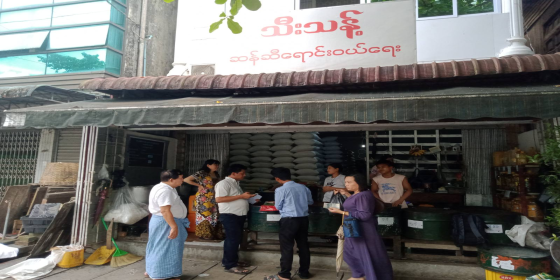 စားသုံးသူရေးရာဦးစီးဌာန၊ ရန်ကုန်အရှေ့ပိုင်းခရိုင်ဦးစီးမှူးရုံးမှ ဦးမင်းမင်းစိုး (ဌာနခွဲစာရေး)နှင့် ဝန်ထမ်းများသည် သင်္ဃန်းကျွန်းခရိုင်၊ တောင်ဥက္ကလာပမြို့နယ်၊ မြို့နယ်စည်ပင်သာ ယာရေးကော်မတီမှ တာဝန်ရှိသူများနှင့်ပူးပေါင်းပြီး ဆန်ရောင်းချမှုအ