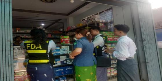 ဧရာဝတီတိုင်းဒေသကြီး၊ မအူပင်ခရိုင်၊ မအူပင်မြို့၌ ကမ်းနားလမ်း၊ မင်းလမ်းပေါ်ရှိ ဆေးဆိုင်များနှင့် အလှကုန်ဆိုင်များအား ဈေးကွက်စောင့်ကြည့် ကွင်းဆင်းစစ်ဆေးခြင်း ကို ခရိုင်