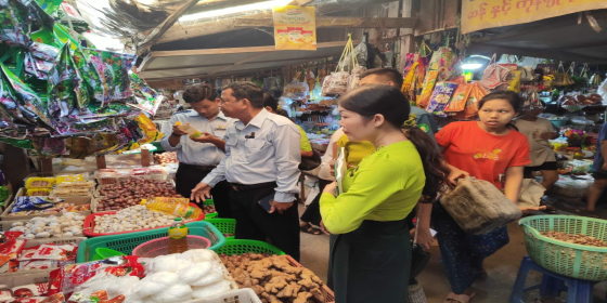 မအူပင်ခရိုင်၊ စားသုံးသူရေးရာဦးစီးဌာန၊ ဓနုဖြူမြို့နယ်ဦးစီးမှူးရုံးမှ ဦးခိုင်လွမ်းမိုးနှင့် ဝန်ထမ်းများသည် (၇.၁၁.၂၀၂၅) ရက်နေ့ နံနက် (၀၈း၀၀) နာရီအချိန်တွင် မြို့နယ်စည်ပင်သာယာရေးအဖွဲ့နှင့်အတူ ကုန်စုံဆိုင် (၈)ဆိုင်မှ ရောင်းချသည့် ဟင်းလျာမ