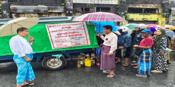 မွန်ပြည်နယ်၊ ဘီးလင်းမြို့နယ်၊ ရွှေလှေကျေးရွာတွင် (၂၀.၉.၂၀၂၅) ရက်နေ့၌ Kaung Hlyan New Asia ကုမ္ပဏီမှ ဘီးလင်းမြို့နယ်အတွက် ခွဲတမ်းရရှိသော စားအုန်းဆီများကို လက်လီကိုယ်စားလှယ်များထံသို့