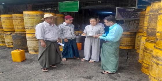 ၁၉.၁၁.၂၀၂၅ ရက်နေ့၊ နံနက် (၁၂း၂၀)နာရီအချိန်ခန့်တွင် စားသုံးသူရေးရာဦးစီးဌာန၊ ရန်ကုန်တိုင်းဒေသကြီးဦးစီးမှူးရုံးမှ အရှေ့ပိုင်းခရိုင်ဦးစီးမှူးဦးဇော်မင်းလတ်နှင့်ဝန်ထမ်းများက ဦးဆောင်လျက် ဆီလုပ်ငန်းရှင်များအသင်းမှတာဝန်ရှိသူများ၊ သက်ဆိုင်ရာမြို့နယ်အုပ်ချုပ်ရေးမ