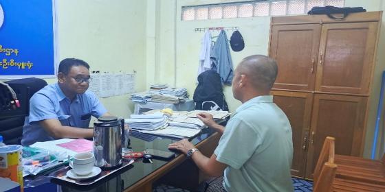 ၂၀၂၅ ခုနှစ်၊ နိုဝင်ဘာလ ၈ ရက်နေ့၊ နေ့လယ် ၃း၃၀ နာရီအချိန်တွင် စားသုံးသူရေးရာဦးစီးဌာန၊ တိုင်းဒေသကြီးဦးစီးမှူးအား ဆန်စပါးကုန်သည်များအသင်းဥက္ကဋ္ဌမှ ဆန်စပါးလုပ်ငန်းကြီးကြပ်ရေး အဖွဲ့ လုပ်ငန်းညှိနှိုင်းအစည်းအဝေး ကျင်းပနိုင်ရန်အတွက် လာရောက်တွေ့ဆုံခဲ့ပါသည်။