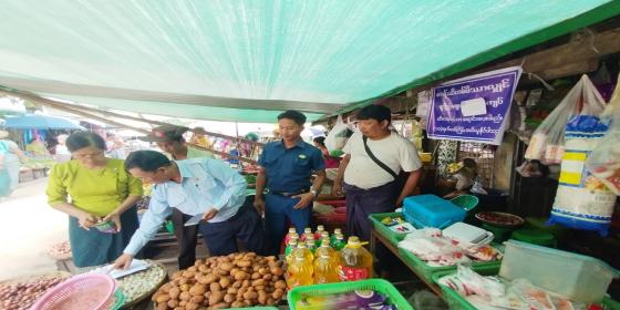 ဧရာဝတီတိုင်းဒေသကြီး၊ စားသုံးသူရေးရာဦးစီးဌာန မြောင်းမြခရိုင် မြောင်းမြမြို့နယ်တာဝန်ခံ ဦးလှထွဠ်ဦးနှင့် ဝန်ထမ်းများသည် မြို့နယ်စည်ပင်သာယာရေးအဖွဲ့နှင့် ပူးပေါင်း၍ (