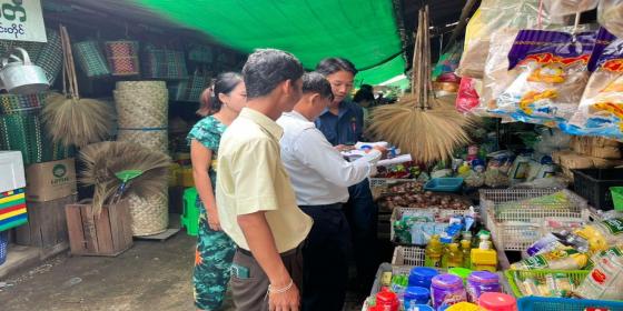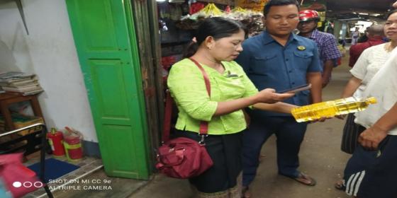 စားသုံးသူရေးရာဦးစီးဌာန၊ မြန်အောင်မြို့နယ်ဦးစီးမှူးရုံးမှ ဒု-ဦးစီးမှူး ဒေါ်ယဉ်ယဉ်ထွန်းသည် မိတ်ဘက်ဌာနဆိုင်ရာများနှင့်ပူးပေါင်း၍ (<
