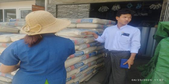 စားသုံးသူရေးရာဦးစီးဌာန၊ ဧရာဝတီတိုင်းဒေသကြီး၊ ပန်းတနော်မြို့နယ် တာဝန်ခံရုံးသည် မအူပင်ခရိုင် ဦးစီးမှူး ဦးဆောင်၍ (၁၃-၉-၂၀၂၅)ရက်နေ့ နံနက်(၀၉:၀၀)နာရီအချိန်တွင် ပန်းတနော်မြို့ပေါ်ရှိ ဘိလပ်မြေနှင့် အိမ်ဆောက်ပစ္စည်း ရောင်းချသည့်ဆိုင်များသို့ မြို့နယ်စည်ပင်သာယာရေးအဖွဲ့နှင့်အတူ အပတ် စဉ် ကွင်းဆင်းစစ်ဆေးခြင်း ဆ