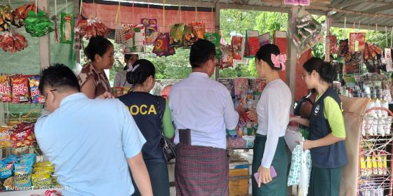 စားသုံးသူရေးရာဦးစီးဌာန ၊ ကျန်းမာရေးဦးစီးဌာန၊ ကျောင်းကျန်းမာရေးအဖွဲ့ တို့နှင့်ပူးပေါင်း၍ (၁၅-၉-၂၀၂၅) ရက် ၊ နံနက်(၀၈:၃၀) နာရီအချိန် တွင် ဘားအံမြို့ရှိ အ.ထ.က (၁) ၊ အခြေခံပညာ အထက်တန်းကျောင်း၌ ကျောင်းမုန့်ဈေးတန်း (၆)ဆိုင်တွင် ရောင်းချနေသော စားသောက်