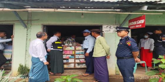 စားသုံးသူရေးရာဦးစီးဌာန၊ အင်္ဂပူမြို့နယ်တာဝန်ခံသည်(၁၀.၉.၂၀၂၅)ရက်နေ့ နံနက် (၁၀:၀၀) နာရီအချိန်တွင် ခရိုင်အစားအသောက်နှင့်ဆေးဝါးကွပ်ကဲရေးဦးစီးဌာန၊ အထွေထွေအုပ်ချုပ်ရေးဦးစီးဌာန၊ မြန်မာနိုင်ငံရဲတပ်ဖွဲ့၊ မြို့နယ်စည်ပင်သာယာရေးဦးစီးဌာနတို့နှင့်အတူ အင်္ဂပူမြို့နယ်၊ မဲဇလီကုန်းမြို့ရှိ ဆေးမျိုးစုံအရောင်းဆိုင်များတွင် သက်တမ်း