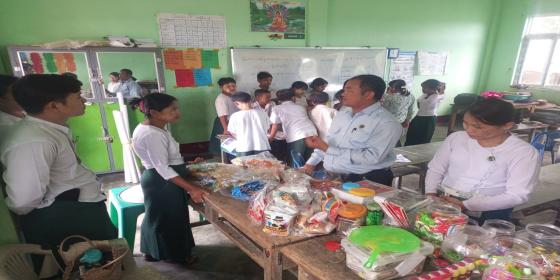 (၁၁.၉.၂၀၂၅) ရက်နေ့၊ နံနက် (၁၁:၃၀) နာရီအချိန်တွင် ရေကြည်မြို့နယ်၊ ငါးသိုင်းချောင်းမြို့ရှိ အ.မ.က ရှမ်းတန်းကျောင်းအတွင်းသို့ ရေကြည်မြို့နယ်စားသုံးသူရေးရာဦးစီးဌာနမှ ဝန်ထမ်းများသည် ကျောင်းအုပ်ဆရာမကြီးနှင့် ကျောင်းမုန့်ဈေးတန်းကြီးကြပ်ရေးကော်မတီဆရာမများနှင့် အတူ အ.မ.က ရေတံခွန်ကျောင်းရှိ ကျောင်းမုန့်ဈေးတန်းသို့ သွားရောက်၍ က