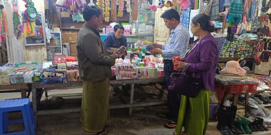 စီးပွားရေးနှင့်ကူးသန်းရောင်းဝယ်ရေးဝန်ကြီးဌာန၊ စားသုံးသူရေးရာဦးစီးဌာန၊ စစ်ကိုင်းတိုင်း ဒေသကြီး၊ မုံရွာခရိုင်ဦးစီးမှူးရုံးအနေဖြင့် ထုတ်ကုန်များလုံခြုံစိတ်ချရမှုရှိစေရေး၊ ကုန်စည်များတွင် ကုန်အညွှန်းအမှတ်အသားများ ပြည့်စုံစွာထည့်သွင်းဖော်ပြထားခြင်းရှိ/မရှိ၊ စားသုံးသူများနေ့စဉ် အသုံးပ