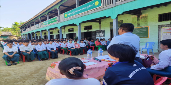 ဧရာဝတီတိုင်းဒေသကြီး၊ စားသုံးသူရေးရာဦးစီးဌာန၊ မြောင်းမြခရိုင် ဝါးခယ်မမြို့နယ် တာဝန်ခံဦးအောင်မိုးနှင့် ဝန်ထမ်းများသည် မိတ်ဖက်အဖွဲ့များနှင့် ပူးပေါင်း၍ (၁၂.၁၂.၂၀၂၅)ရက်နေ့ နံနက်(၁;၃၀)နာရီနာရီ ဝါးခယ်မမြို့နယ်၊ မောင်းဒီးကျေးရွာ အထကကျောင်းတွင် ဆရာ/