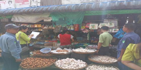 ကျုံပျော်မြို့နယ် စားသုံးသူရေးရာဦးစီးဌာနမှ မြို့နယ်တာဝန်ခံနှင့်ဝန်ထမ်းများ သည် မြို့နယ်ကုန်ဈေးနှုန်းတည်ငြိမ်ရေးလုပ်ငန်းအဖွဲ့ဝင်ဌာနများနှင့်အတူ ၂၅.၁၀.၂၀၂၅ ရက်နေ့ နံနက် (၈:၃၀)အချိန်တွင် မြို့မစည်ပင်ဈေးအတွင်းရောင်းချလျှက်ရှိသော မီးဖိုချောင်သုံး ပစ္စ