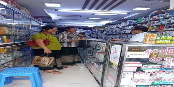 ၂၄.၁၀.၂၀၂၅ ရက်နေ့ နေ့လယ် (၁၂း၀၀)နာရီအချိန်တွင် လမ်းမတော်မြို့နယ် ဟိန်းဆေးဆိုင်တွင် ရောင်းချနေသော ဆရာဝန်ထောက်ခံချက်မရှိ သောက်သုံးနိုင်သောဆေးဝါးတို့တွင် ကုန်အညွှန်းအမှတ်အသားများပြည့်စုံစွာ ပါဝင်ခြင်းရှိ/ မရှိကွင်းဆင်းစစ်ဆေးခြင်များပြုလုပ်ခဲ့ကြောင်