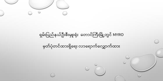 မြန်မာဆန်စပါးအွန်လိုင်း(MyRO)ကို စီးပွားရေးနှင့်ကူးသန်းရောင်းဝယ်ရေးဝန်ကြီးဌာန၊ စားသုံးသူရေးရာဦးစီးဌာနနှင့် မြန်မာနိုင်ငံဆန်စပါးအသင်းချုပ်တို့ ပူးပေါင်းဆောင်ရွက်လျက်ရှိပြီး စာ