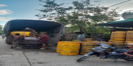 ဧရာဝတီတိုင်းဒေသကြီး၊ စားသုံးသူရေးရာဦးစီးဌာန၊ မြောင်းမြခရိုင် ဝါးခယ်မမြို့နယ် တာဝန်ခံဦးအောင်မိုးနှင့် ဝန်ထမ်းများသည် ( ၉.၉.၂၂၀၂၅)ရက်နေ့၊ နံနက်(၈;၀၀)အချိန်တွင် ဝါးခယ်မမြို့နယ်၊ ဆီကိုယ်စားလှယ်များထံသို့ ပို့ပေးသော စားအုန်းဆီများကို ရန်ကုန်မြို့ရှိ တော်ဝင်ဧကရာဇ် ကုမ္မဏီ၏(ယဉ်အမှတ်9l-4723 )မော
