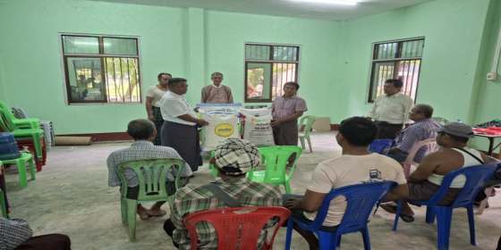 ရန်ကုန်တိုင်းဒေသကြီး၊ တွံတေးခရိုင်၊ ကော့မှူးမြို့နယ်တွင် နိုင်ငံ့စီးပွားမြှင့်တင်ရေး ရန်ပုံငွေဖြင့် အကျုံးမဝင်သော မိုးစပါးစိုက်တောင်သူများသို့ သီးနှံပေါ်ပေးစနစ်ဖြင့် ယူရီးယားကွန်ပေါင်း ဓာတ်မြေဩဇာ သွင်းအားစုများကို စက်တင်ဘာလ(၅)ရက်နေ့၊ နေ့လယ်(၁၂